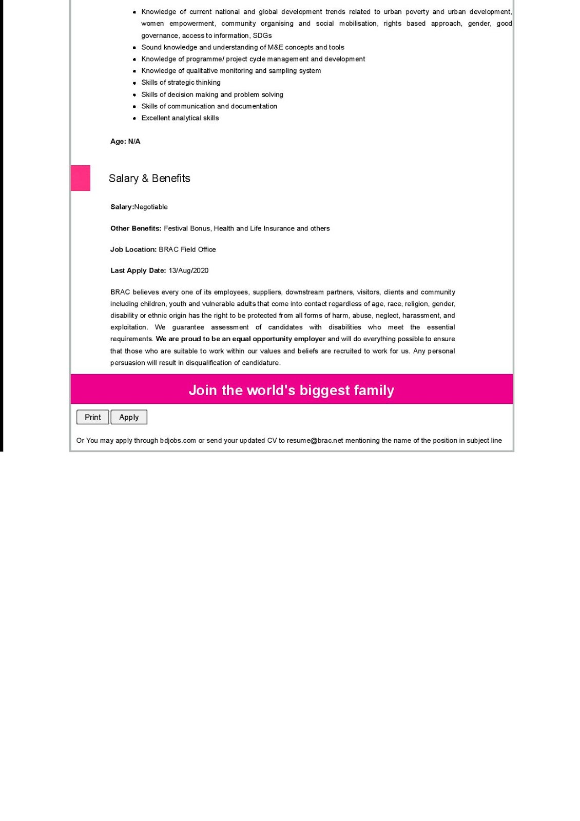 Organization Name: BRAC NGOOfficial Website: http://careers.brac.net