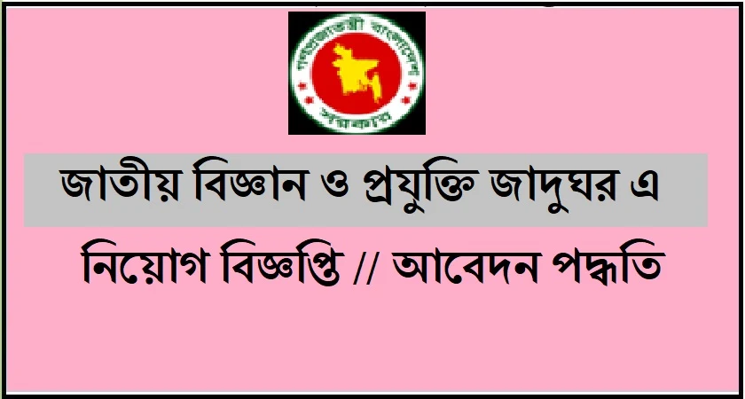 জাতীয় বিজ্ঞান ও প্রযুক্তি জাদুঘর (National Museum of Science & Technology - NMST) - এর নিয়োগের জন্য উপর্যুক্ত প্রক্রিয়ায় সঠিকভাবে আবেদন করুন। পাশাপাশি নিয়োগ বিজ্ঞপ্তি টি শেয়ার করে আপনার বন্ধুদের জানিয়ে দিন।