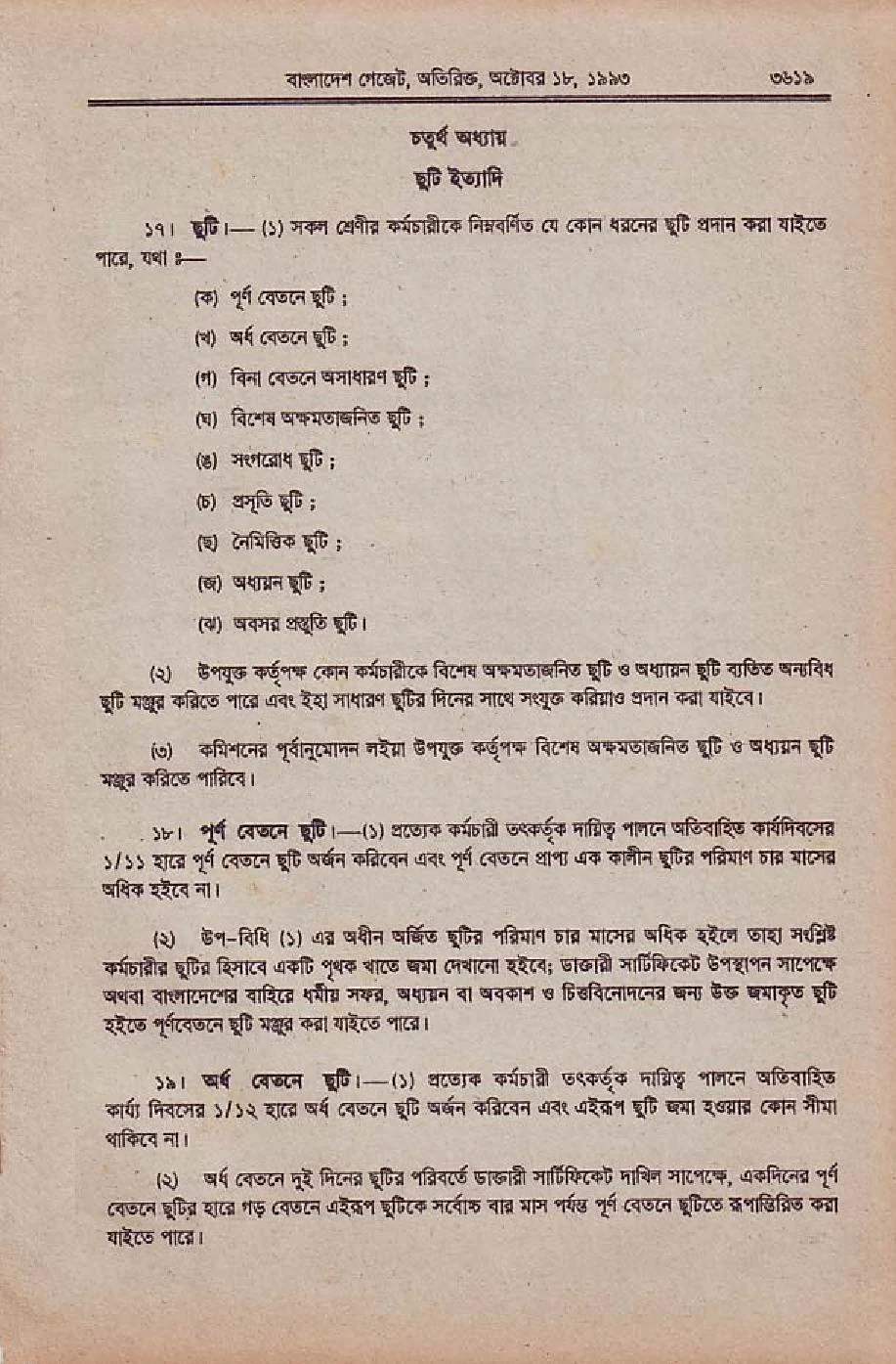 (গ) (Optional Leave) একজন কর্মচারী তার নিজ ধর্ম অনুযায়ী বছরে সর্বমোট ৩ দিন ছুটি ভোগ করার অনুমতি।