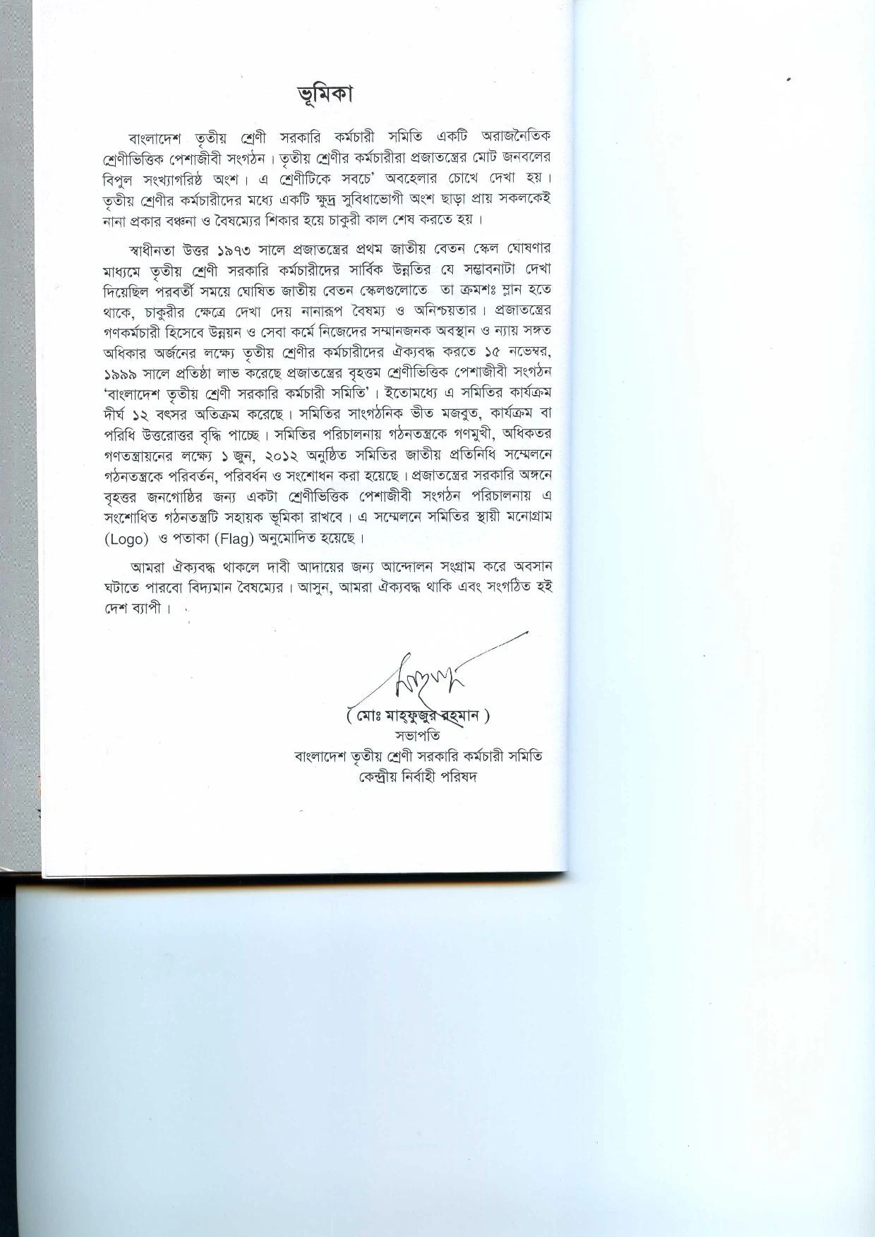সরকারি তৃতীয় শ্রেণী কর্মচারীর ঘোষণাপত্র ও গঠনন্ত্র